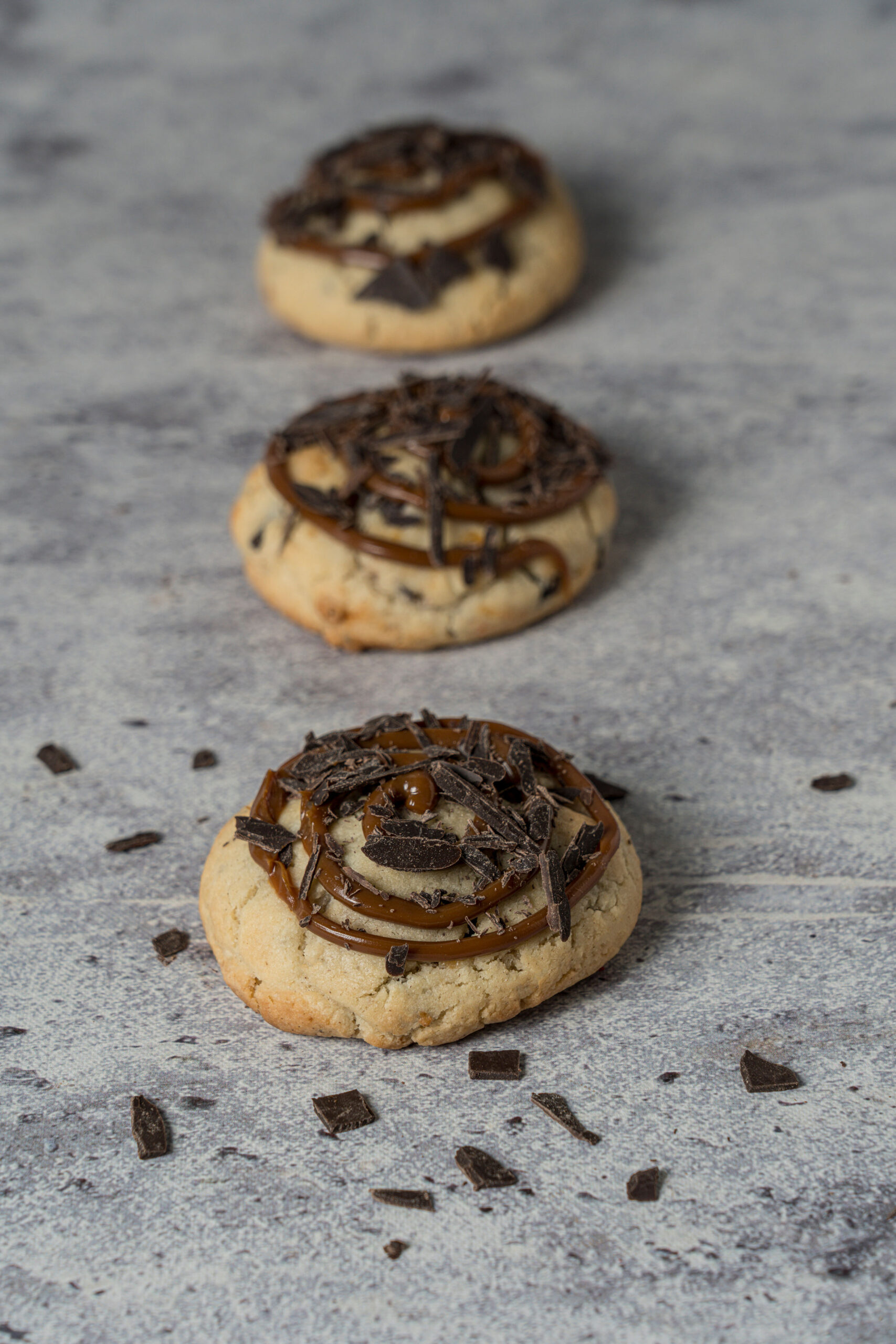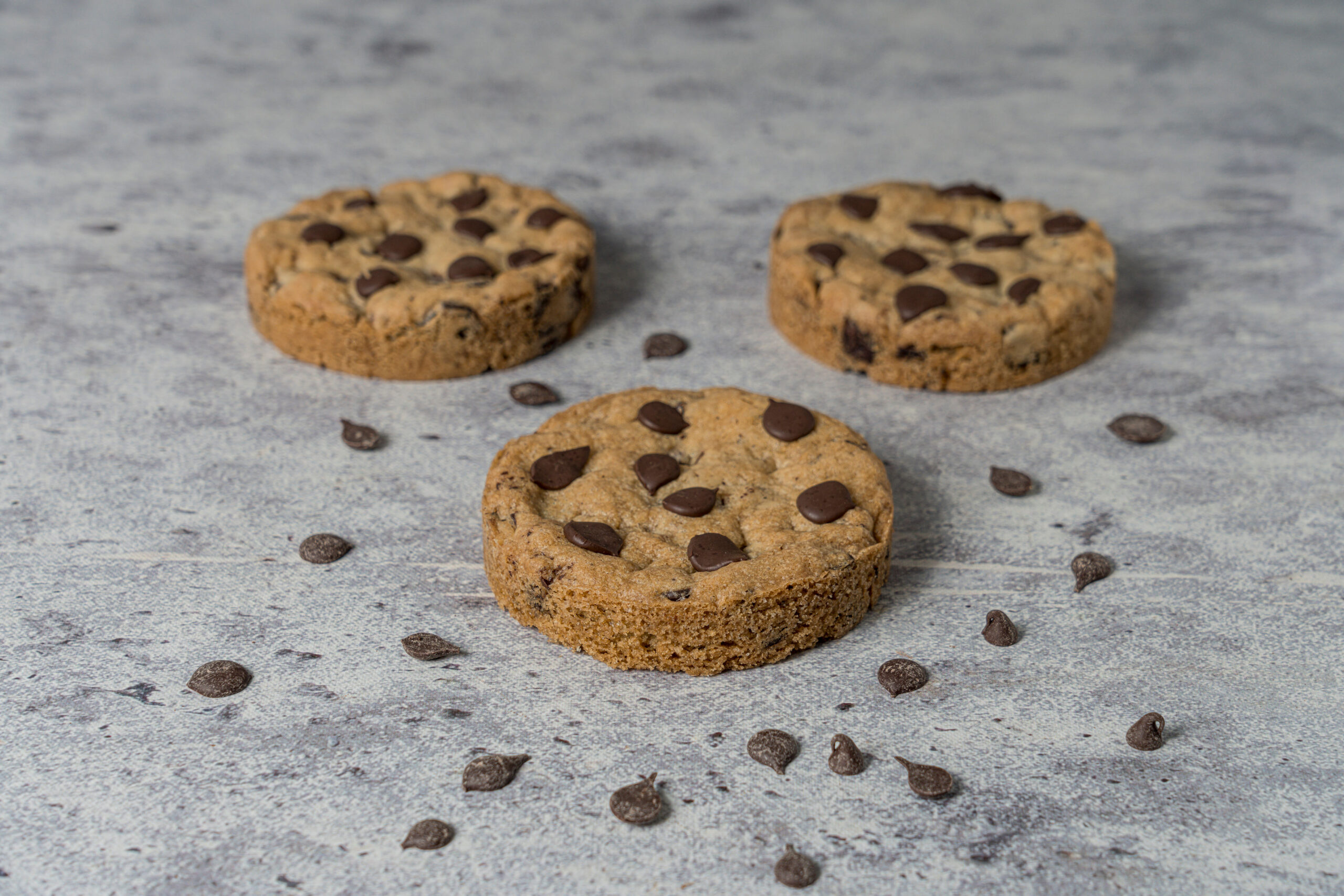 Cookies rellena con ganache de chocolate y chips de chocolate.