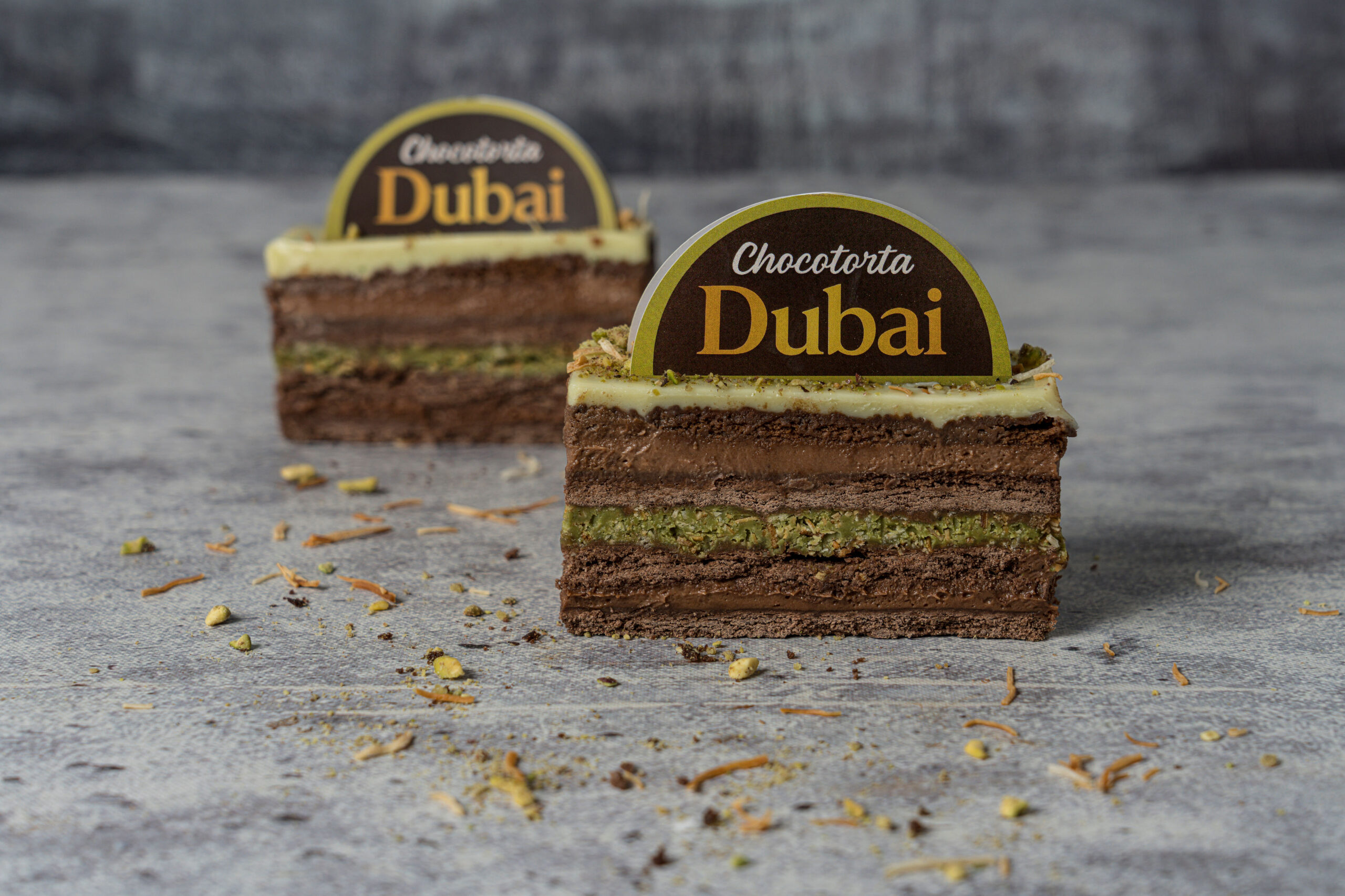Relleno de ganache de choco de ganache de pistacho, cubierta con mezcla dubai.
